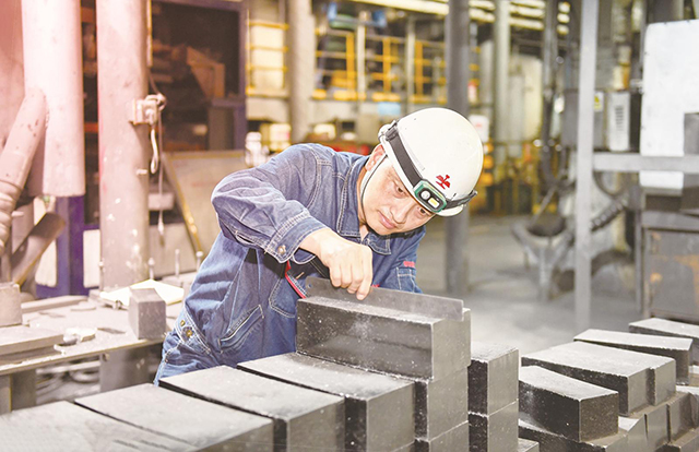 9月10日,冶材公司耐材事業部職工胡健在檢查耐材產品外觀質量。今年以來,該公司堅持以市場為導向,通過強化過程質量管控,優化生產工序銜接,不斷提升產品合格率,確保效益最大化。1至8月份,該公司自產耐材產品合格率99.6%,創歷史新高。